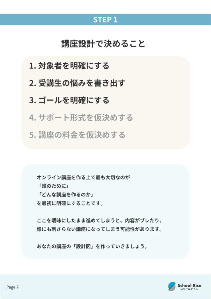 イメージができたら、講座の概要を深めていきましょう。